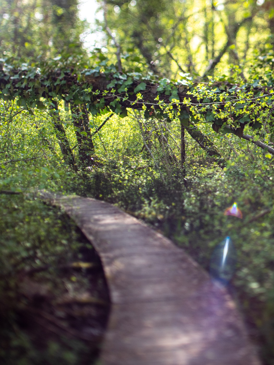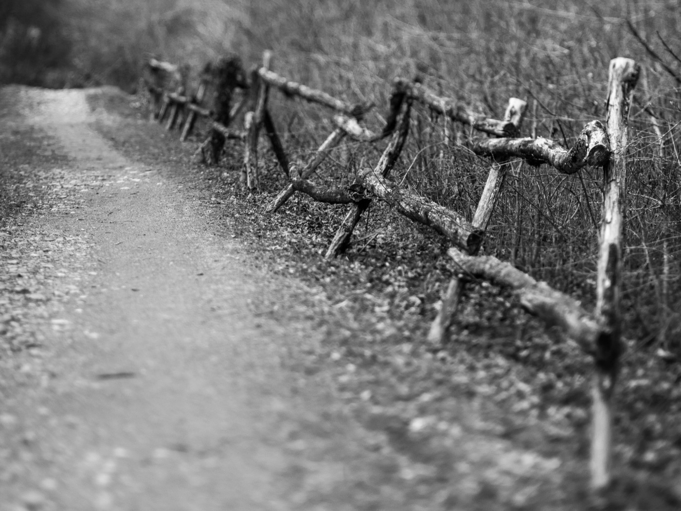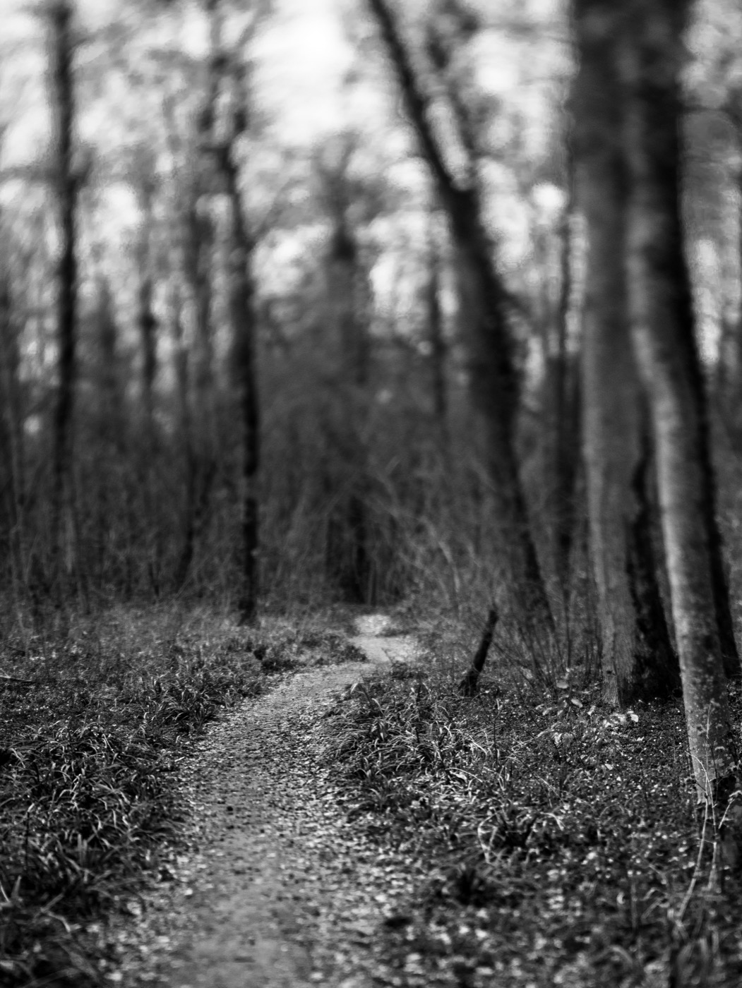 Au milieu de tous ces branchages qui bloquent le chemin et la vue, j’ai fait la mise au point sur la cassure de l’arbre. On voit bien la bande horizontale de netteté permise par l’objectif.