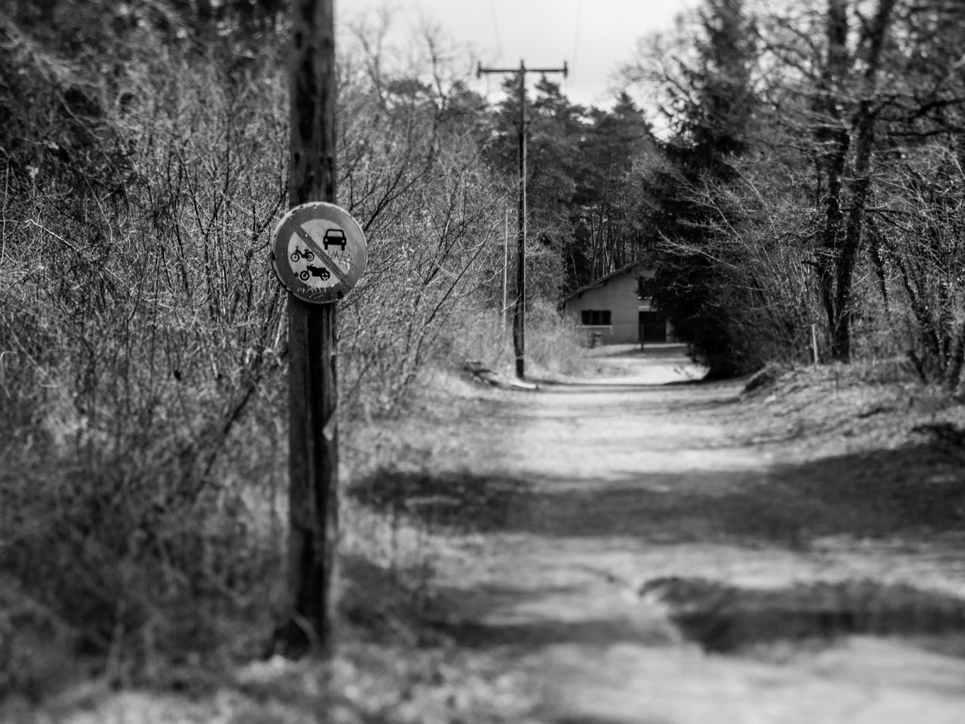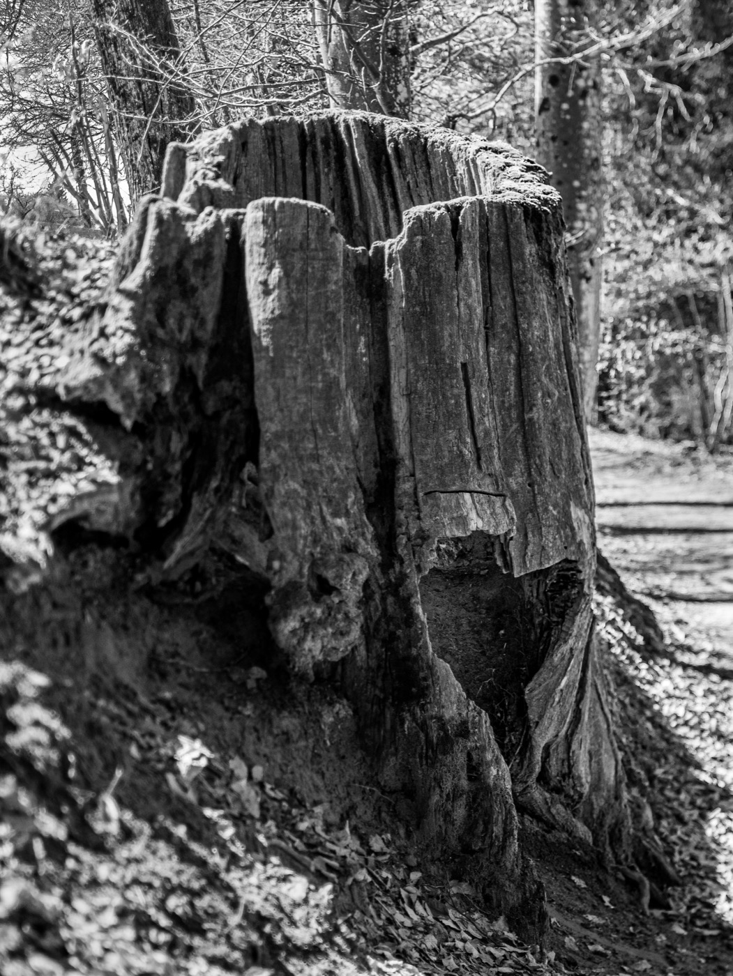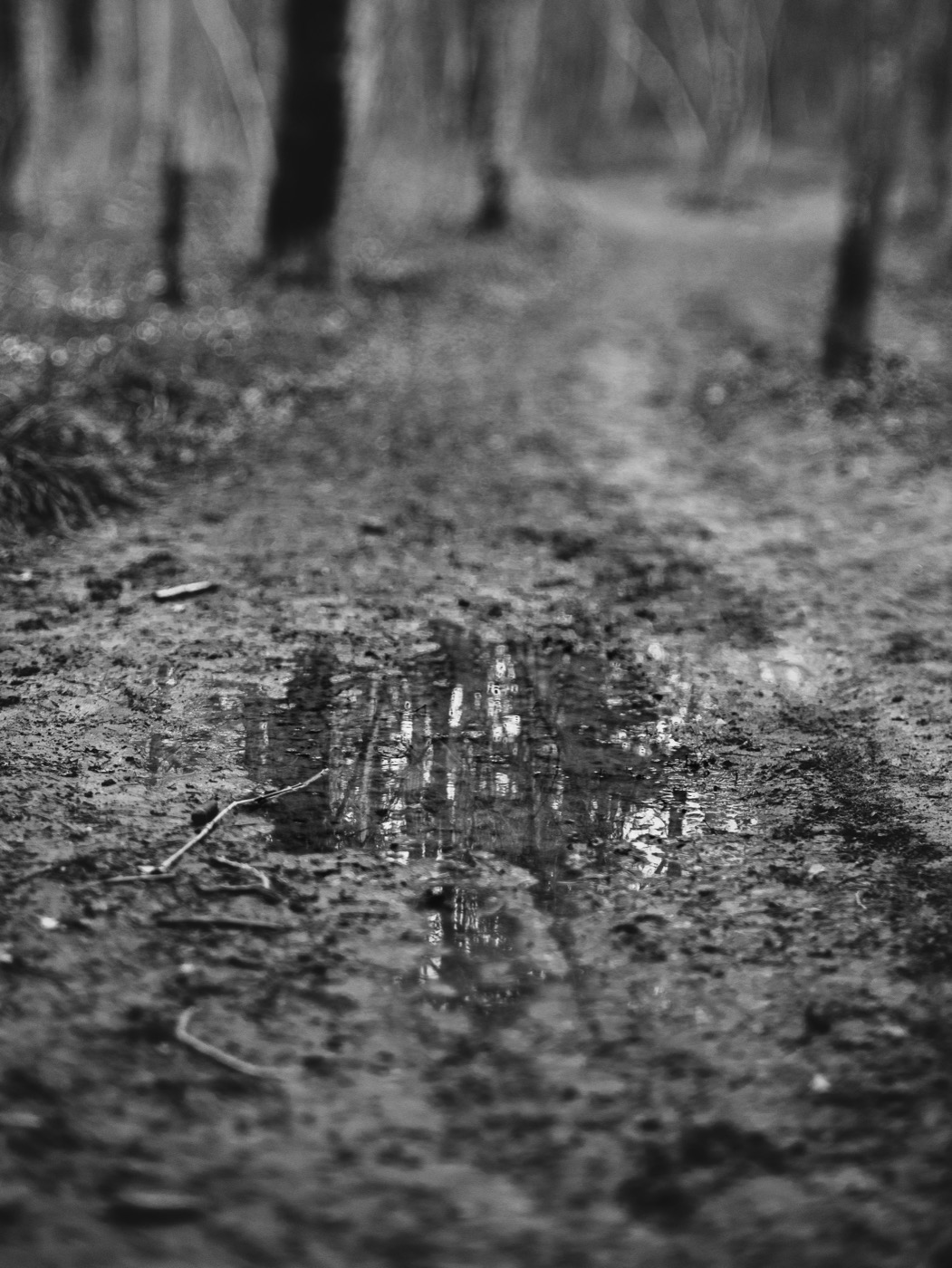 Au milieu de tous ces branchages qui bloquent le chemin et la vue, j’ai fait la mise au point sur la cassure de l’arbre. On voit bien la bande horizontale de netteté permise par l’objectif.