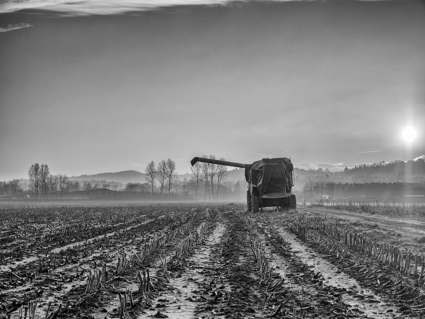 Un soir de janvier, je me motive pour aller sur les bords du lac juste au moment du coucher du soleil. Je pars équipé, Polaroid, argentique, numérique, je fais pas le voyage à vide. Tout le long du trajet en voiture, le soleil est flamboyant. Sauf qu’avec ma chance de winner des Alpes, quand j’arrive sur place, le soleil bascule de l’autre côté de la montagne me laissant avec une lumière dégueulasse de soir de janvier… Mais, en y regardant de plus près, le coin offrait de beaux reflets. Ces reflets et une autre séance dans un champ de tournesols noircis, cette fois-ci pile au coucher du soleil, et vous avez mes 5 élues de ce début 2020.