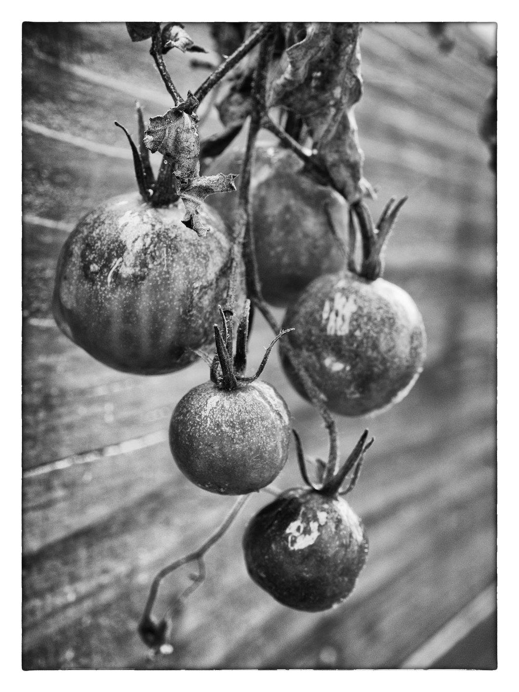 Je viens de finir mon 2e mois sans photo, juste avant que d’autres ne commencent leur 1er mois sans tabac… P*t&%$, 2 mois ! Mais, j’ai dépoussiéré le numérique ces deux derniers jours pour alimenter la rubrique « 5 photos du mois ». C’est des photos un peu prises en vitesse, avec ce qui me tombait sous les yeux, mais quoi de plus représentatif que des tomates résistantes et des gouttes d’eau pour symboliser l’automne naissant ?