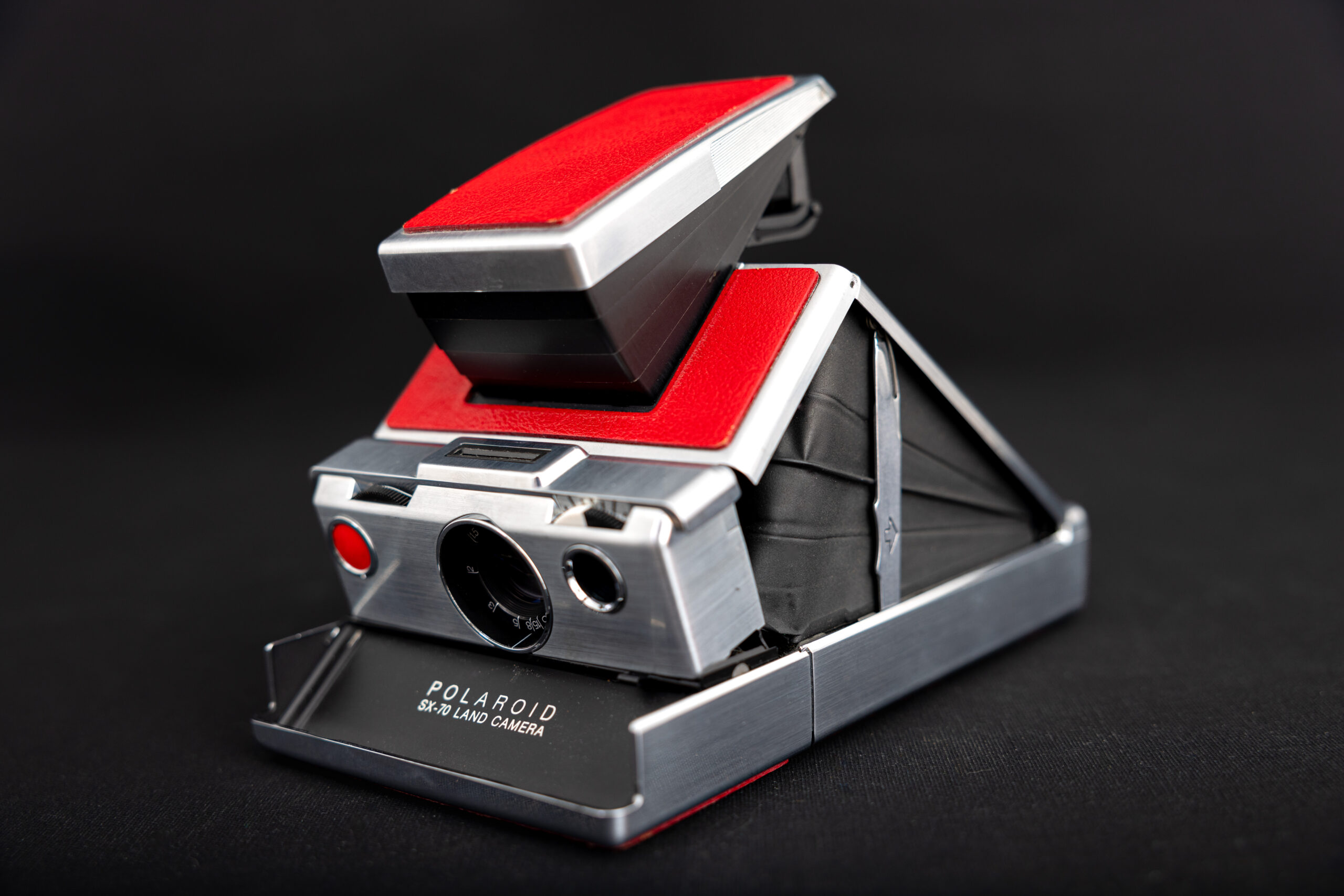 Photographie du Polaroid SX-70 au cuir rouge