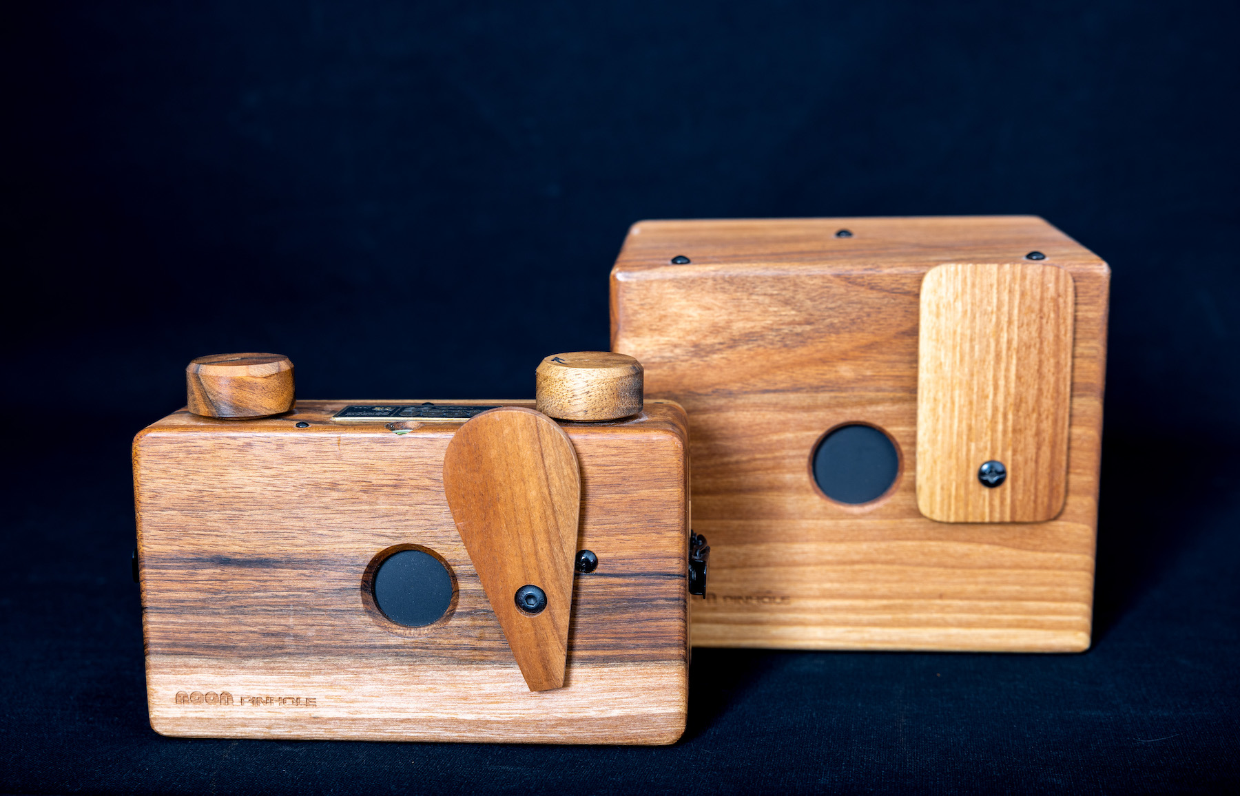 Pour finir, mes 2 sténopés en bois, un au format 120 et l’autre au format 4×5 que j’utilise plus souvent avec un dos Polaroid.